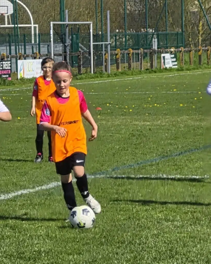 Après trois années passées à jouer avec les garçons dans un autre club, Calie a franchi le pas et rejoint le groupement. Un changement important pour elle, motivé par l’envie de partager sa passion entre filles.