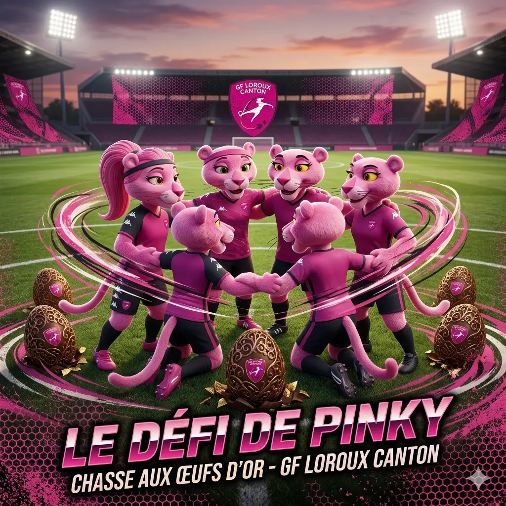Il était une fois, dans le royaume verdoyant du GF Loroux Canton, une panthère rose nommée Pinky. Mais Pinky n’est pas une mascotte ordinaire : c’est une meneuse de jeu, une gardienne du temple, et surtout, une sacrée farceuse.